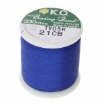 Some of the many benefits to using KO thread: they are pre-waxed, colorfast, abrasion and tangle-resistant, which can be knotted tightly and securely. They work well with commonly used size 10 or 12 beading needles. This thread is an excellent alternative for Nymo and is similar in diameter to a Nymo size B, which measures 0.008 in/0.2032mm diameter.